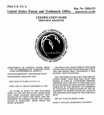 Thai Hom Mali cấp cho Bộ Công thương Thái Lan