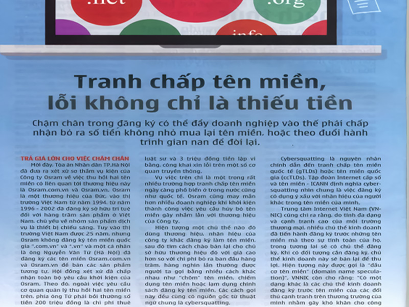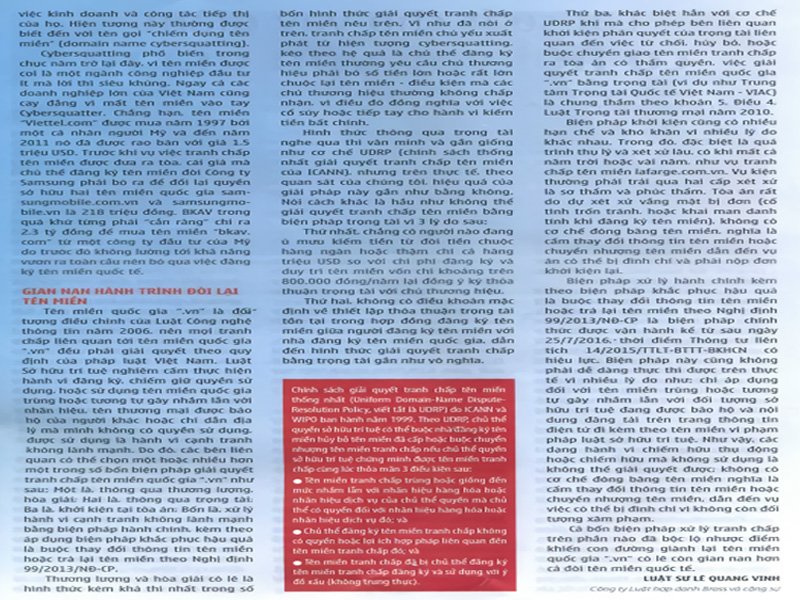 Bình luận của Bross & Partners về nhược điểm và sự gian nan của 4 biện pháp đòi lại tên miền quốc gia .VN mà Việt Nam được cho là vận dụng theo Chính Sách Giải Quyết Tên Miền Thống Nhất (UDRP) lên báo Tin Nhanh Chứng Khoán