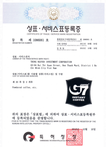 Thời gian thực hiện: Trường hợp phát sinh trở ngại khách quan như không có từ chối của Cơ quan nhãn hiệu và/hoặc phản đối của bên thứ ba, sẽ mất khoảng 12-14 tháng kể từ ngày nộp đơn đến khi nhãn hiệu được cấp bảo hộ tại Hàn Quốc.